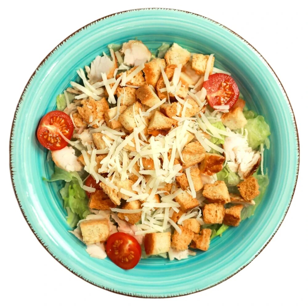Хрустящий микс из салата Романо, куриного филе-гриль, сыра Пармезан, крутонов и фирменного соуса "Цезарь".